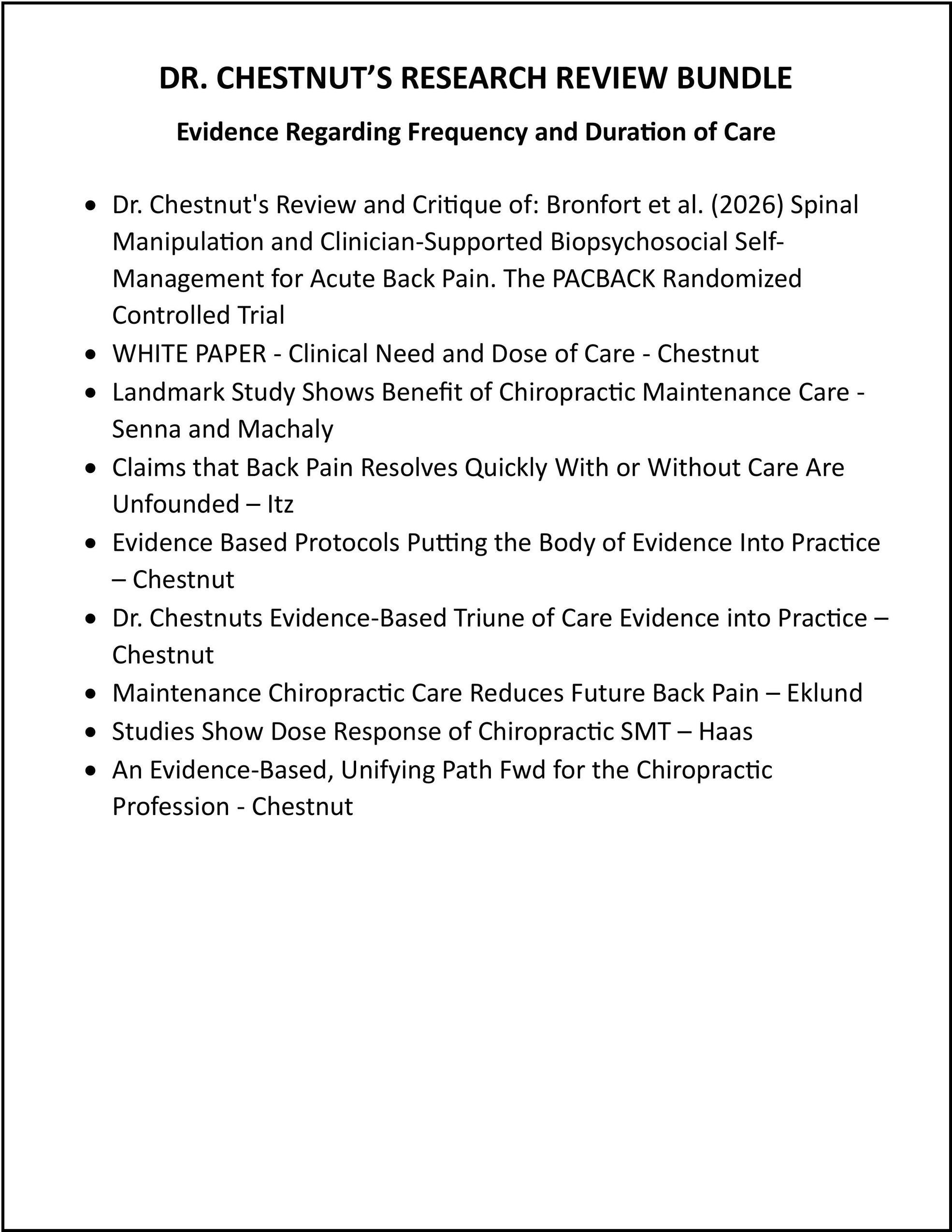 Dr. Chestnut’s Research Reviews will build your knowledge, your confidence, your certainty, your patient outcomes, and your practice! Dr. Chestnut’s Research Reviews summarize and highlight the peer reviewed evidence regarding the proven benefits of Chiropractic and Lifestyle.